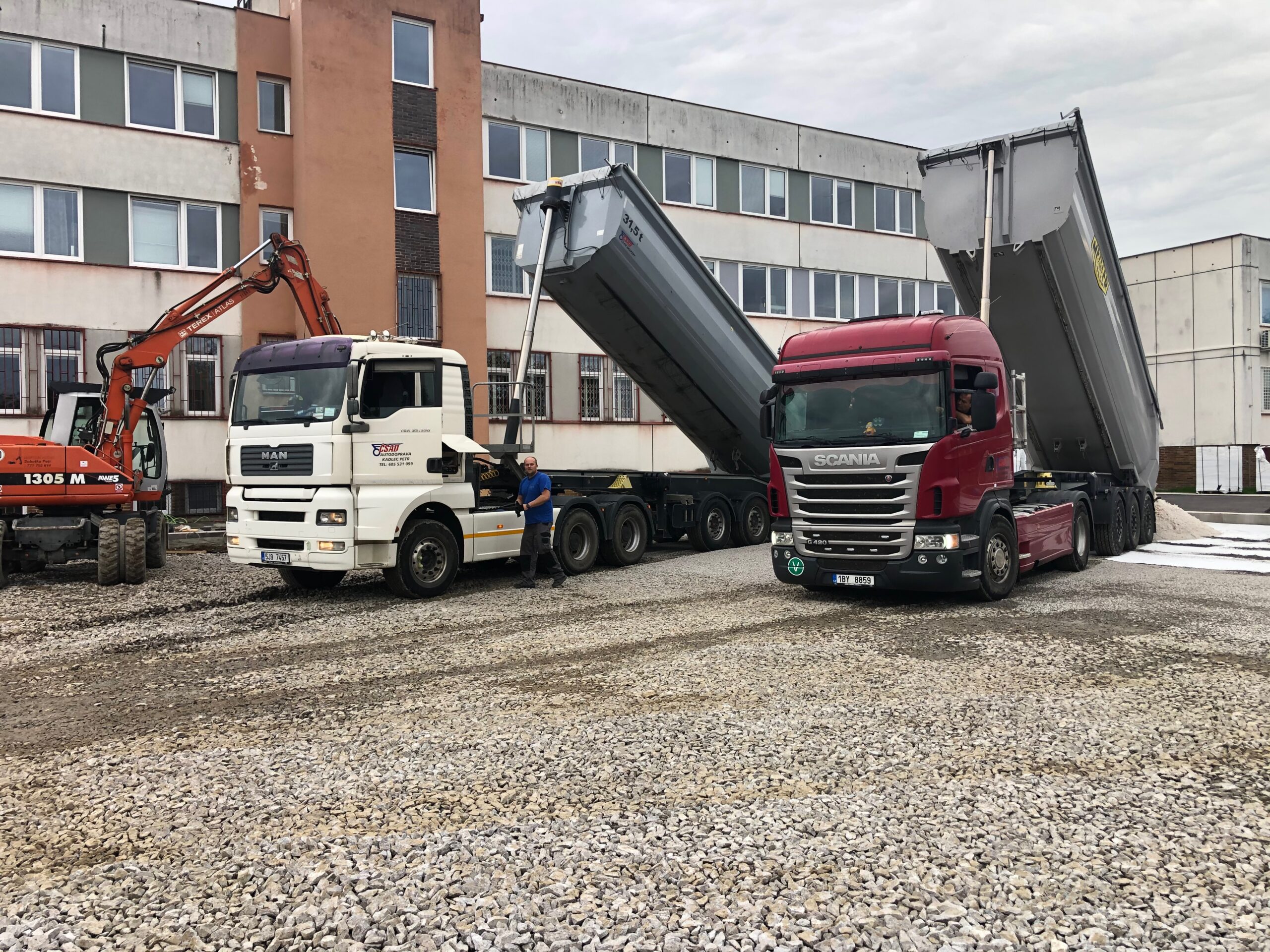 Zajišťujeme silniční přepravu štěrku, písku a kameniva s pomocí nákladních vozidel MAN 31,5 t se sklopnými návěsy. Materiály se nakládají pomocí rypadla, čelního nakladače nebo dopravníku, vykládají se na staveništi a ukládají se na určená místa. Dodržujeme dopravní zákony a kontrolujeme kvalitu materiálů.